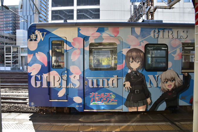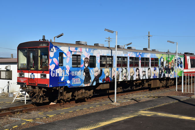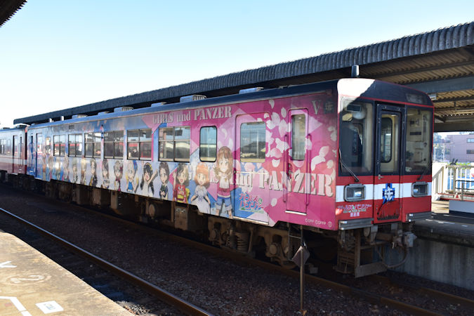 続いて、鹿島臨海鉄道でアニメ「ガールズアンドパンツァー」ラッピング車に乗車。