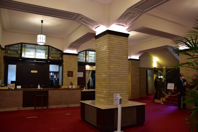 1937(昭和12)年に藤村朗の設計で旧館の背後に増築。こちらは新館と呼ばれ、外観は本館にイメージを合わせた筋面タイル貼りとなる一方、内装は重厚な雰囲気の本館に対し、新館は明るく軽快な雰囲気となっています。そして、今回訪問したのは当施設が年末で閉館し、旧館は曳家の上で保存、新館は取り壊しの上で再開発が行われることになったため。