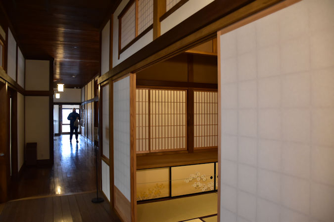 応接室。天井には龍が描かれた4枚の天井画が貼られています。