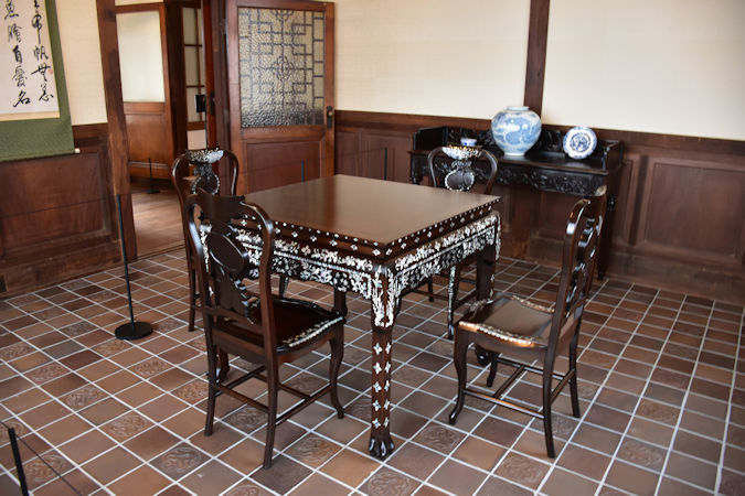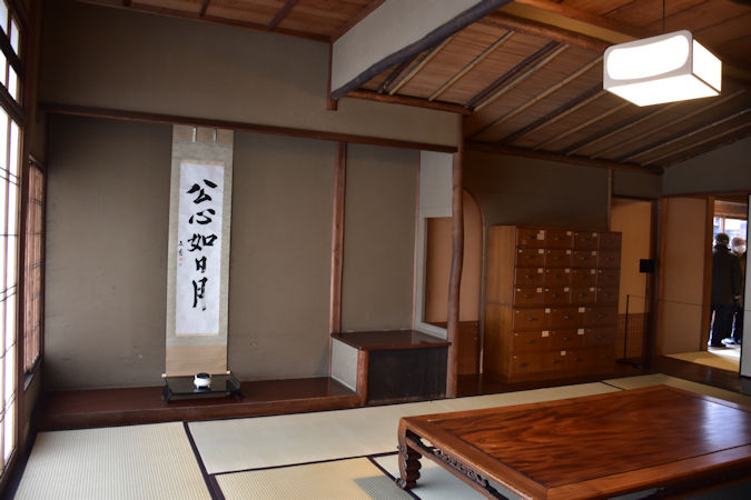 1945(昭和20)年12月16日、「巣鴨拘置所」への出頭当日の早朝に近衛文麿が服毒自殺した書斎。当時の雰囲気を残しています。