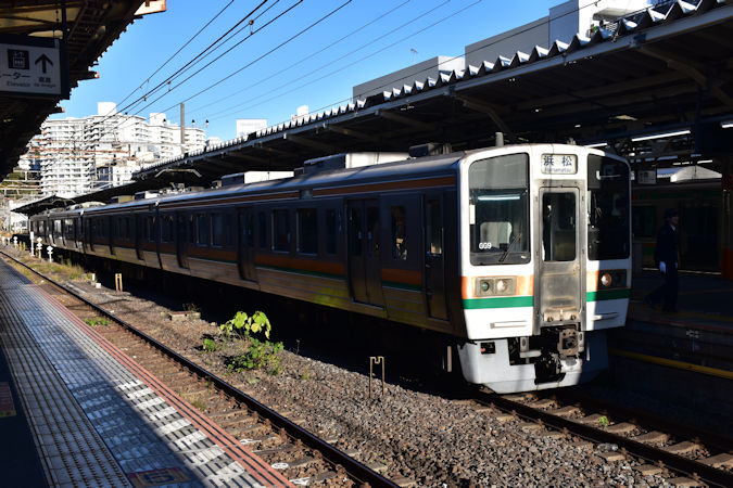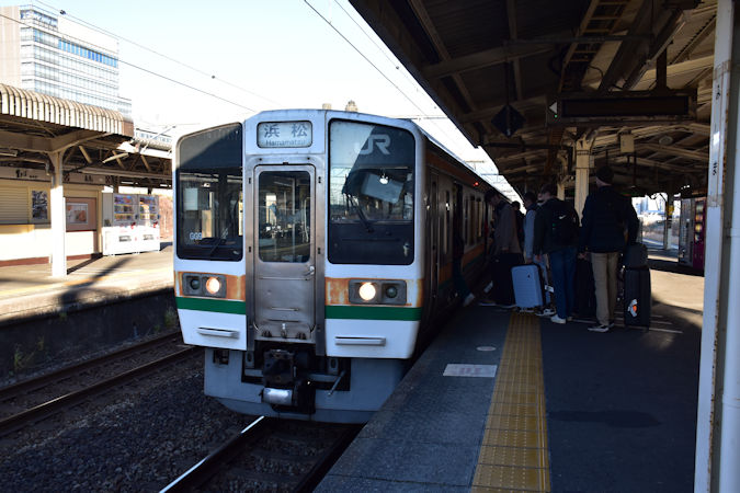 この日は日中に仕事を終えてから、何となく三嶋大社へ初詣へ行くことに。熱海駅から乗車した東海道線は、211系GG9編成+313系による4両編成でした。