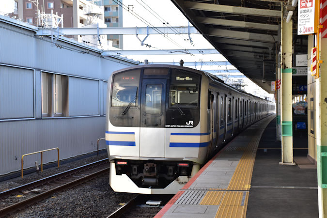 この日はE217系グリーン車に乗車し、まずは総武本線の市川駅へ。