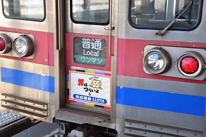 続いて京成金町線に乗り換え。3600形に「男はつらいよ」55周年× 京成電鉄創立115周年記念ヘッドマークが掲出されていました。2024年10月31日(木)から2025年3月23日(日)までの企画だそうです。