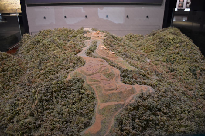 名取市にあった中世の山城跡、熊野堂大館跡(くまのどうおおだて)の復元ジオラマ。現在は団地や学校として開発され、痕跡はありません。