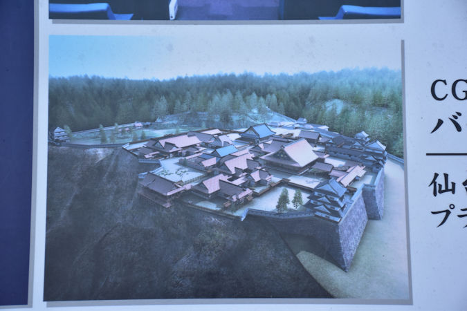 また、本丸跡にある仙台城見聞館には本丸御殿大広間の一部(上段の間)が再現されているほか、本丸御殿の復元模型があります。