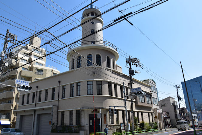 この日は高輪ゲートウェイ駅で下車し、高輪周辺を散策。まずは、高輪警察署前交差点に建つ高輪消防署二本榎出張所へ。1933(昭和8)年築で、設計は警視庁総監会計課営繕係の越智操。東京都選定歴史的建造物に指定されています。
