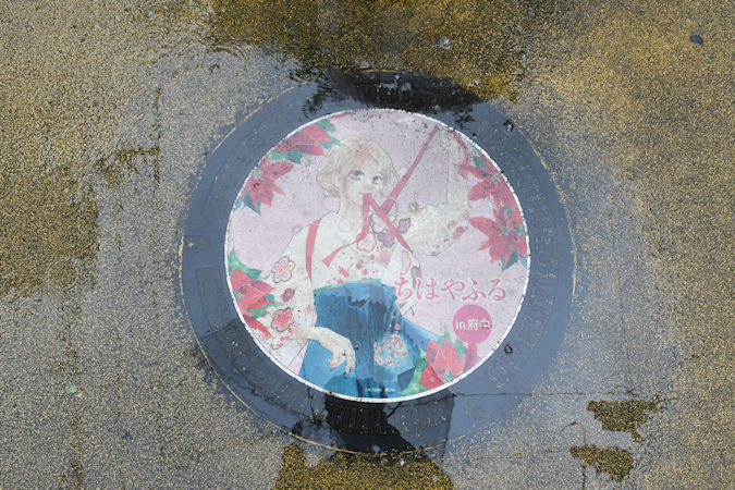 府中市の「ちはやふる」マンホールを撮影していきます。