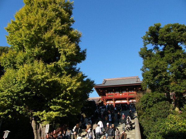 何度も行ってはいますが、せっかくなので最後に鶴岡八幡宮へ。写真のイチョウは、見ごろは来週といったところでしょうか。
