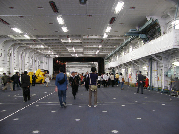 そして見学者の数もベラボーに多い。手荷物検査だけで、9時40分に並んでから脱出したのが10時30分。さらに護衛艦「ひゅうが」の前にも長蛇の列で、中に入ったのは11時15分。さらに中でも甲板に上がる人の順番待ちで、ようやく上がれたのが11時50分といった感じ。あまりに混雑振りに、周りの人はタダで見せてもらっていることも忘れ、「早くしろ」「これだから公務員はダメなんだ」「民間にイベントを運営させるべきだ」「これでは戦争に負けるぞ」と口々に不平不満を発する始末。