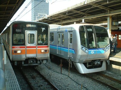 さて、沿線火災の方は復旧しましたが、馬藤所員が足止め喰らっているので、中野駅で営団地下鉄をまた撮影。左、左上の写真を見てください。このマークがどんどん消えていっております。興味がない人には「それがどうした」、ですが、営団が民営化されて発足する、東京地下鉄の新マークに変わってしまう前に、記録しておこうと考えるのは、自然な発想じゃなくて?(笑)。