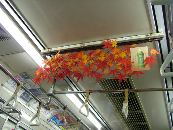 さて、じわじわと秋の気候が近づいておりますが、中央線の車内では一足早く紅葉を迎えました(笑)。