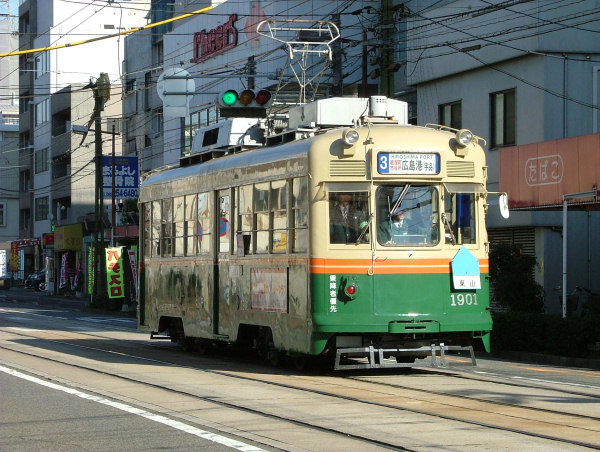 せめて・・・というわけで、例年通り近所で広島電鉄の路面電車を撮影。5000形グリーンムーバー。
