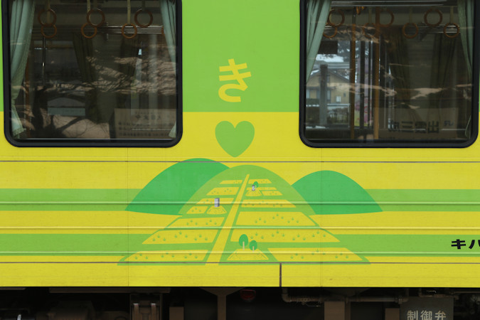 木次線用のキハ120形のうち4両は、2023(令和5)年1月から木次線利用促進を目的とした、沿線をイメージしたラッピングを実施。全4種ありキハ120 2は「棚田」をテーマにしている。