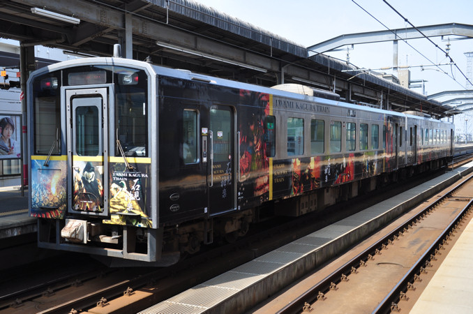 2012(平成24)年10月に登場した「石見神楽」ラッピング車。キハ126-2・1002に施されている。