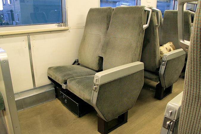 客席は着席部分を明確化したバケットタイプのロングシートで、仕切板を座席間に3〜5人毎に配置している。