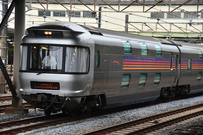 衰退する寝台特急の中でも好調を維持していた寝台特急「北斗星」だったが、使用される24系の老朽化や設備の陳腐化が目立ってきており、よりグレードの高い設備と、個室車両のニーズにも応える新車両が求められていた。そこでJR東日本は24系以来となる新型車両として、このE26系を開発。列車愛称も新たに「カシオペア」を与え、1999(平成11)年7月16日の札幌行きより営業運転を開始し、その豪華な設備は現在でも好評を博している。客車として初めてステンレス車体を採用し、ブルートレインのイメージから大幅に変更。客室は全て個室とし、さらに便所と洗面所も個室ごとに設置している。なお、24系と同じく電源車から電源を供給する方式を採用しており、E26系オリジナル車両としてはカハフE26が製造される一方、故障に備えて24系のカニ24 510を改造したカヤ27 501が準備されている。