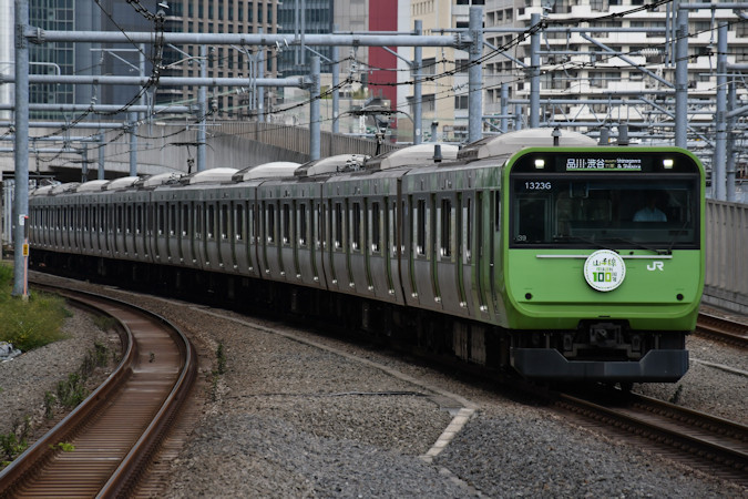 2025(令和7)年10月4日に登場した山手線環状運転100周年記念ラッピングトレイン。トウ44編成が205系風にラッピングされている。