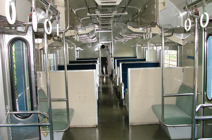 九州鉄道記念館(福岡県北九州市門司区)で保存されているクハネ581-8。クハ715-1に改造されていたもので、内装は715系当時のまま。