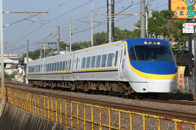 リニューアルされて塗装も大幅に変更された8000系。座席種別に塗装が異なり、指定席車がオレンジ色、グリーン車が赤色、自由席車が青色となっている。