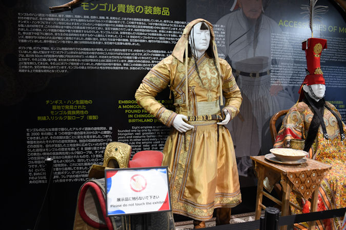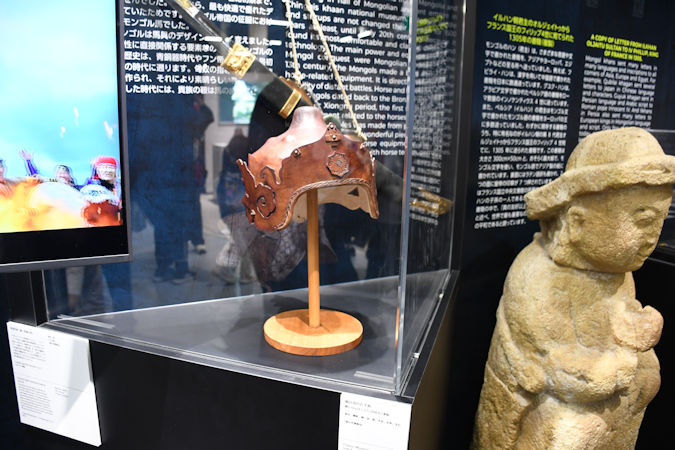 モンゴル国は、国土の約80%が草原である東アジアの内陸国で、首都はウランバートル。パビリオンではモンゴル貴族の装飾品ほかチンギス・ハン関連の展示のほか、伝統的な衣装や帽子、靴や石像、弓などの展示で遊牧民の暮らしを紹介。かなり見ごたえある内容になっています。