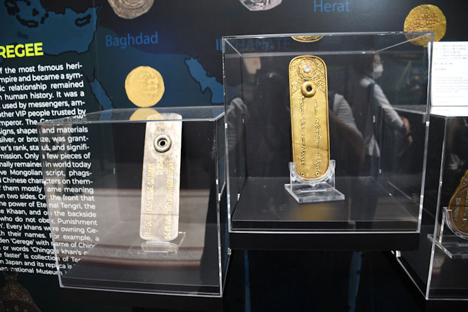 モンゴル帝国の駅伝制(ジャムチ)で使用されたもので、モンゴル皇帝から信任を受けた使者や大使などの要人が使用した通行証、現代のパスポートです。金や銀など階級によって素材は変わり、彫られている文字は様々。写真2枚目のゲレゲはパスパ文字が彫られています。