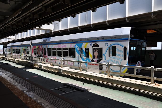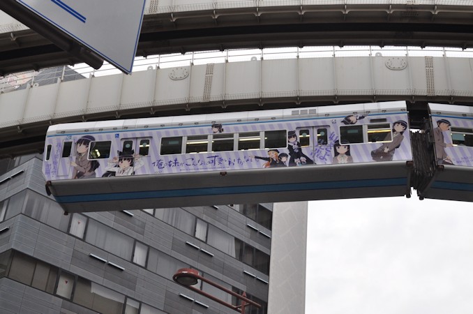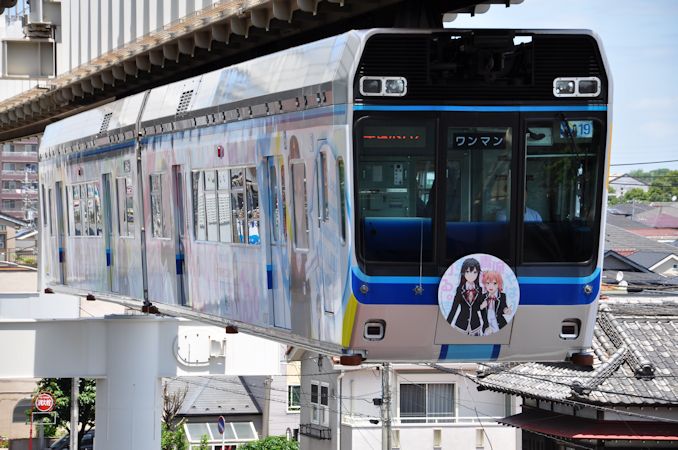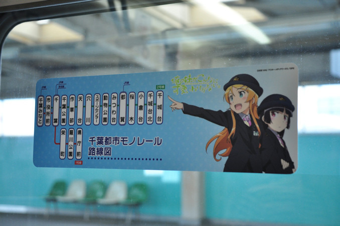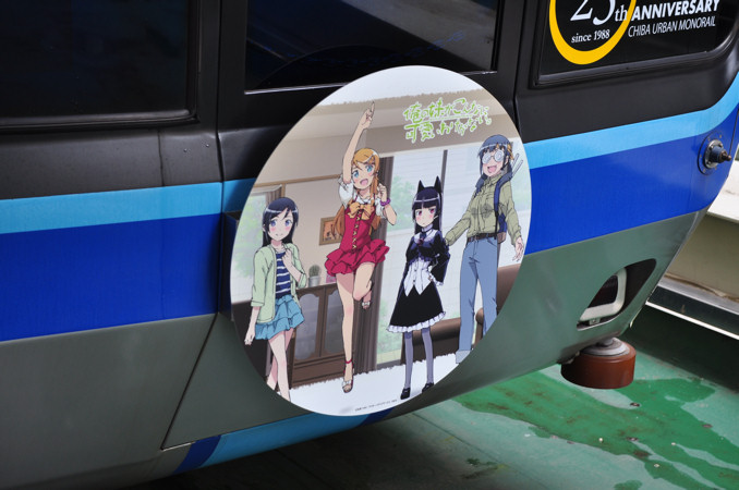 2013(平成25)年3月30日から9月30日まで運転された、千葉都市モノレールのアニメ「俺の妹がこんなに可愛いわけがない」ラッピング車。6月8日(土)から出演声優のキャラクターボイスによる車内アナウンスが日中に開始されている。