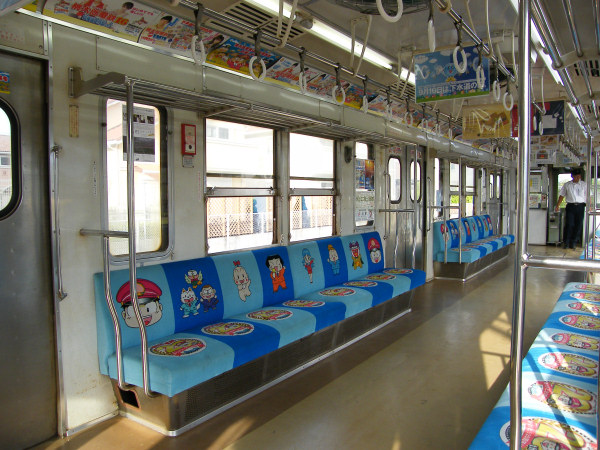 漫画「鉄子の旅」原作者、菊池直恵さんデザインによる塗装(1002号)。車内も「鉄子の旅」関連展示され、2011年9月までこの姿だった。