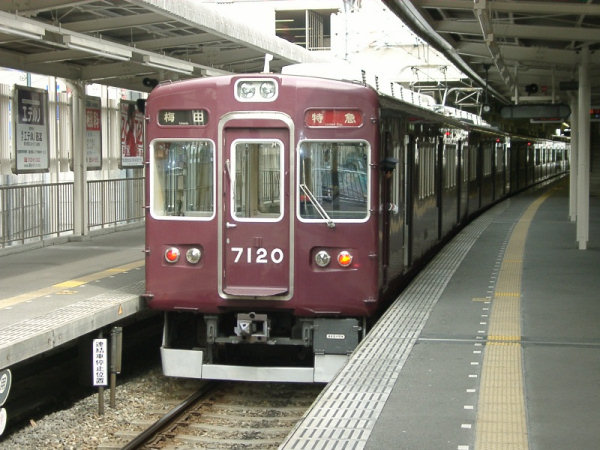 1979(昭和54)年にデビューし、以後10年間にわたり210両を大量建造された、阪急最大の車両グループ。当然、神戸線、宝塚線系統の主力車両である。製造初期の車体は鋼製だが、1984年以降からはアルミ製で製造されており、この後の8000・8200・8300系に引き継がれた。制御方式は回生ブレーキ付界磁チョッパ装置を採用した省エネ車両。
