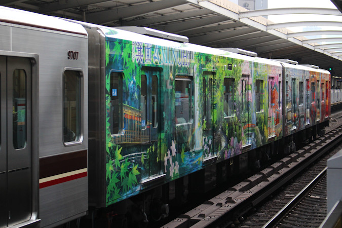 2023(令和5)年から第6編成、第7編成のうち、両先頭車から2両が「箕面ラッピングトレイン」の1つ、箕面大滝や紅葉を基調としたデザインとなり、明治の森箕面国定公園や日本の滝百選に選ばれた箕面大滝など、紅葉(もみじ)を基調に、箕面の美しい四季の移ろいを鮮やかなグラデーションで表現している。