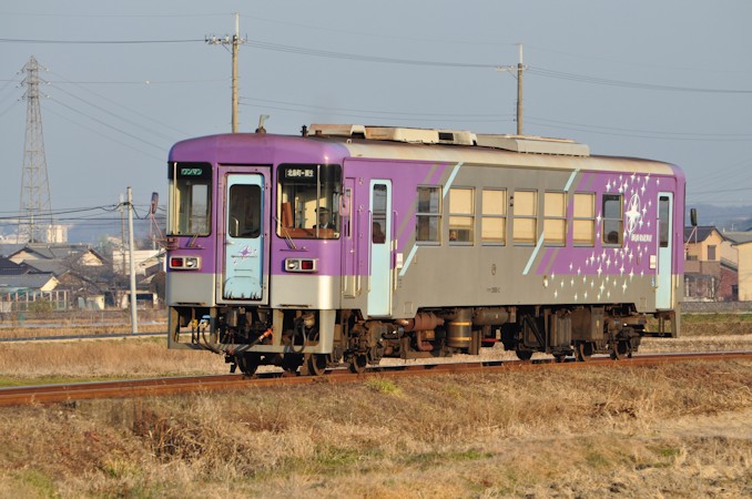 フラワ2000−3は三木鉄道ミキ300−104を編入したもの。現在は他のフラワ2000形と共通イメージのデザインと、アクセントカラーを緑色としている。