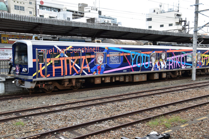 「ラブライブ!サンシャイン!!」ラッピング電車第2弾。2017(平成29)年4月8日(土)に3000系3506編成にフルラッピングされて運行を開始したもので、「Aqours」の3rdシングル「HAPPY PARTY TRAIN」の発売を記念し、その衣装でポーズを決めた状態を描いている。また、キャラクターごとに声優によるメッセージが書かれており、内容は車体の両面で異なっている。