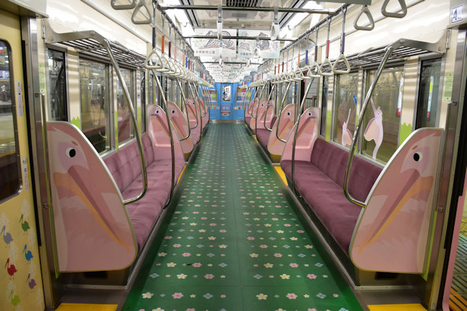 動物園線で運行されている7801編成を改装し、2018(平成30)年3月13日からピンクを基調としたフルラッピング車両としたもの。多摩動物公園駅前の子供向け全天候型遊戯施設「京王あそびの森 HUGHUG」及び、京王れーるランド、多摩動物公園による合同企画。車内は1両ごとに異なる動物のラッピングが施されているほか、座席のモケットも動物に合わせた色に1両ごとに変更されている。