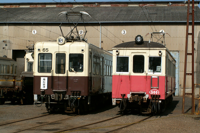 65号は1913(大正2)年に京浜電鉄29号形34号として登場。1948年に同型車7両と共に琴平電鉄に入線した際は制御車として72号を付番された。その後、1960(昭和35)年にそれまでの木造車体を全鋼製車体に新造し、同時に電動車に改造され65号に改番された。志度線が分断されてからは同線の所属だったが、2006(平成18)年10月にトレーラーによる陸送で長尾線に転属した。しかし転属後の活躍は長くなく、2007(平成19)年11月に「さよなら運転」を行い引退した。