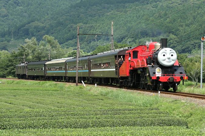その後は通常の日本国鉄時代の黒一色の塗装へ変更されているが、2015(平成27)年からは夏季に「きかんしゃトーマス」に登場する「きかんしゃジェームス号」に改造されて運転されている。