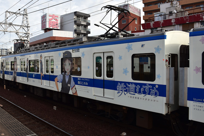 和泉中央方から1両目の西側側面は泉北高速鉄道の鉄道むすめ「和泉こうみ」を中心に、各社の鉄道むすめが描かれている。また、車内運転台の後ろには等身大の和泉こうみと各社の鉄道むすめをラッピング。
