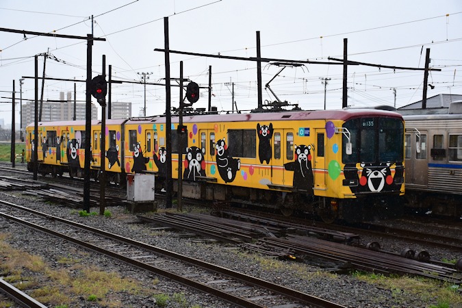 36編成は原色をベースに、くまモンのラッピングが施されている。