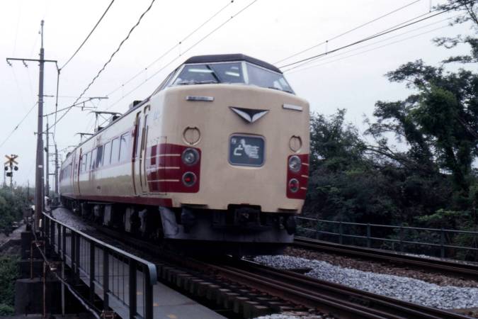 東海道本線の横浜−戸塚間を行く、183系特急「踊り子8号」。