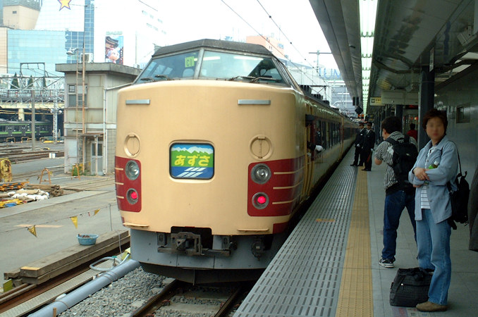 上京してきた「あさま」色の189系。長野への回送に向けて三鷹駅に停車中。