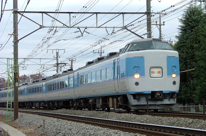 新宿駅を発車する臨時快速「やすらぎの日光号」。189系「彩野」を使用したものだが、この日はトレインマークが・・・。
