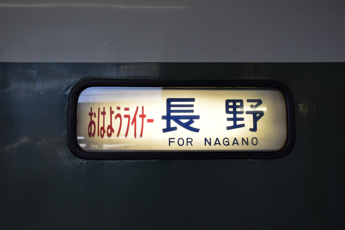 「おはようライナー」運用を前に、塩尻駅で幕回し。懐かしの「あさま」「はまかいじ」表示も登場。