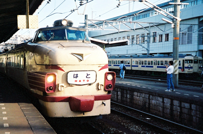 8月26日、新大阪〜博多で485系ボンネット車による特急「はと」がリバイバル運転された時の姿。山陽本線 徳山駅にて。以下すべて。
