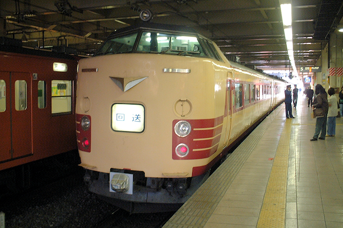 新宿駅に停車中の485系ジョイフルトレイン「ニューなのはな」。