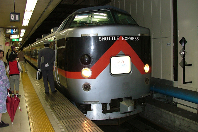 青森駅に停車中の485系3000番台による特急「白鳥」。