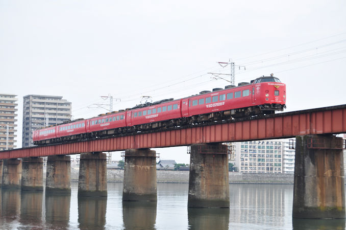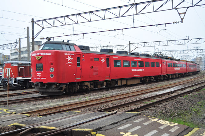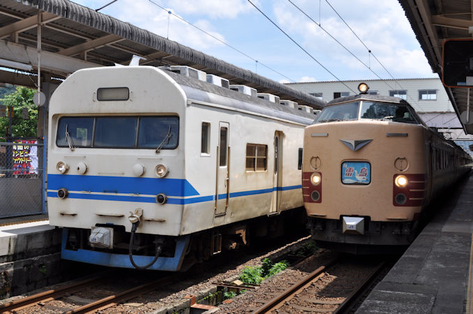 こちらも懐かしの並び。ボンネットのクハ481形には「かもめ」トレインマークを取り付け。