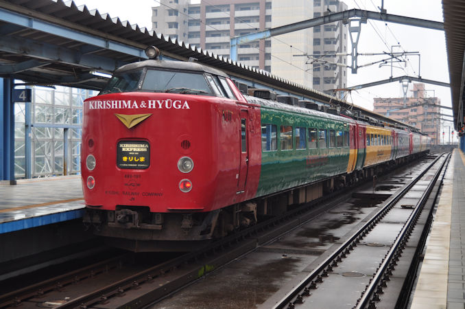 宮崎駅に入線する6両編成の特急「ひゅうが」