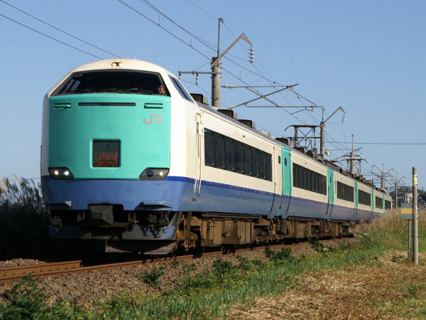 1969(昭和44)年、キハ80系による上野〜秋田を結ぶディーゼル特急として運転を開始し、1972(昭和48)年に羽越本線が電化されると485系化。さらに1982年11月に上越新幹線が開業すると、これと接続する新潟〜秋田などの列車として再編された。米所を走る列車にふさわしい、稲穂が描かれたトレインマークを付けて運転されている。