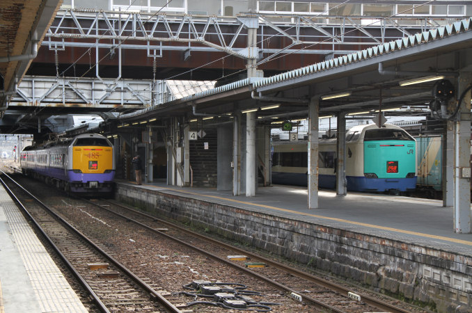 E751系をメインとし、485系はリニューアル車である3000番台を使用。2006(平成18)年3月改正までは485系国鉄特急色も臨時で登板し、485系は双方とも津軽のリンゴをイメージした可愛らしいトレインマークを掲出する。