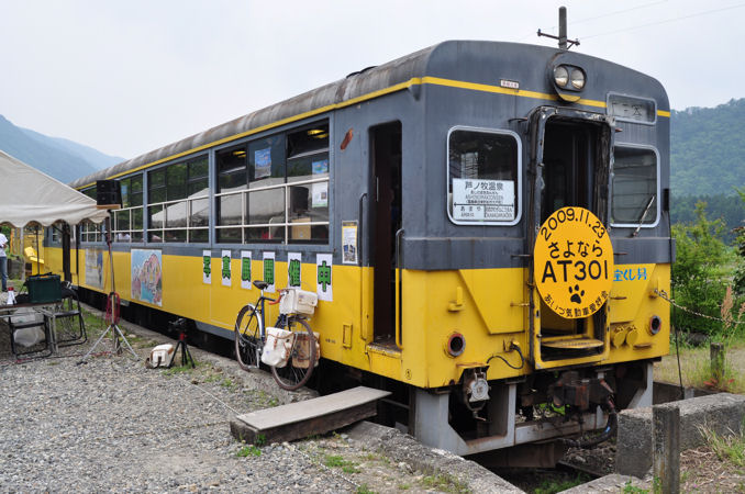芦ノ牧温泉駅で保存されているAT−300形。JR東日本のキハ30 18を改造したもの。