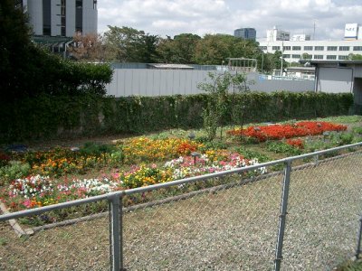 ヤード跡も武蔵小杉寄りの方は線路も撤去され、一部は駐輪場に変身している。また、一部のスペースは写真のように花壇となって、地元のボランティアによって手入れがされている。こういう取組を見ると、空き地の有効利用というのはなにもビジネスばかりではないなぁと思う。