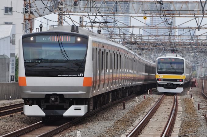 阿佐ヶ谷駅に入線するE233系中央線とE231系。